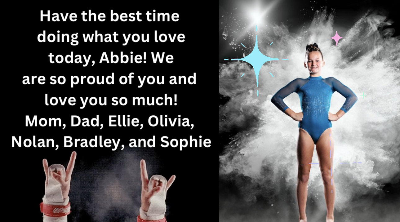 Digital ShoutOuts are heartfelt messages from family, friends, and coaches, cheering on your gymnast and celebrating her big moment at the Magical Classic!